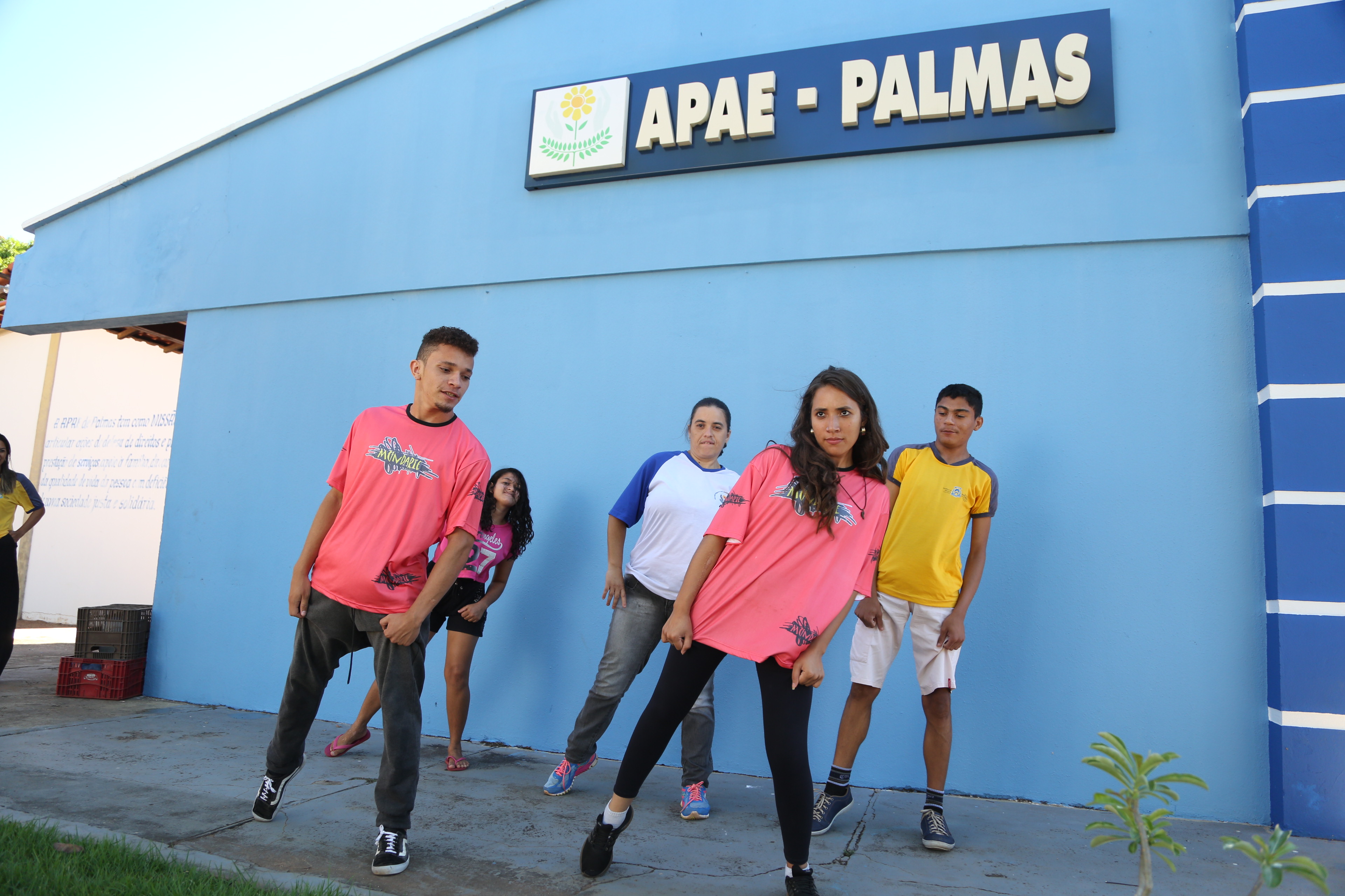 Railene Soares e Lucas Daniel da Cia MundArt e alunos do Colégio Estadual Dom Alano aproveitam as tardes para treinar passos da dança com alunos da Apae