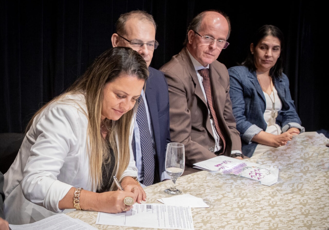 Estudantes da escola Mariana, Daniel Neri e Flora Calheiros representaram os alunos na entrega simbólica dos equipamentos